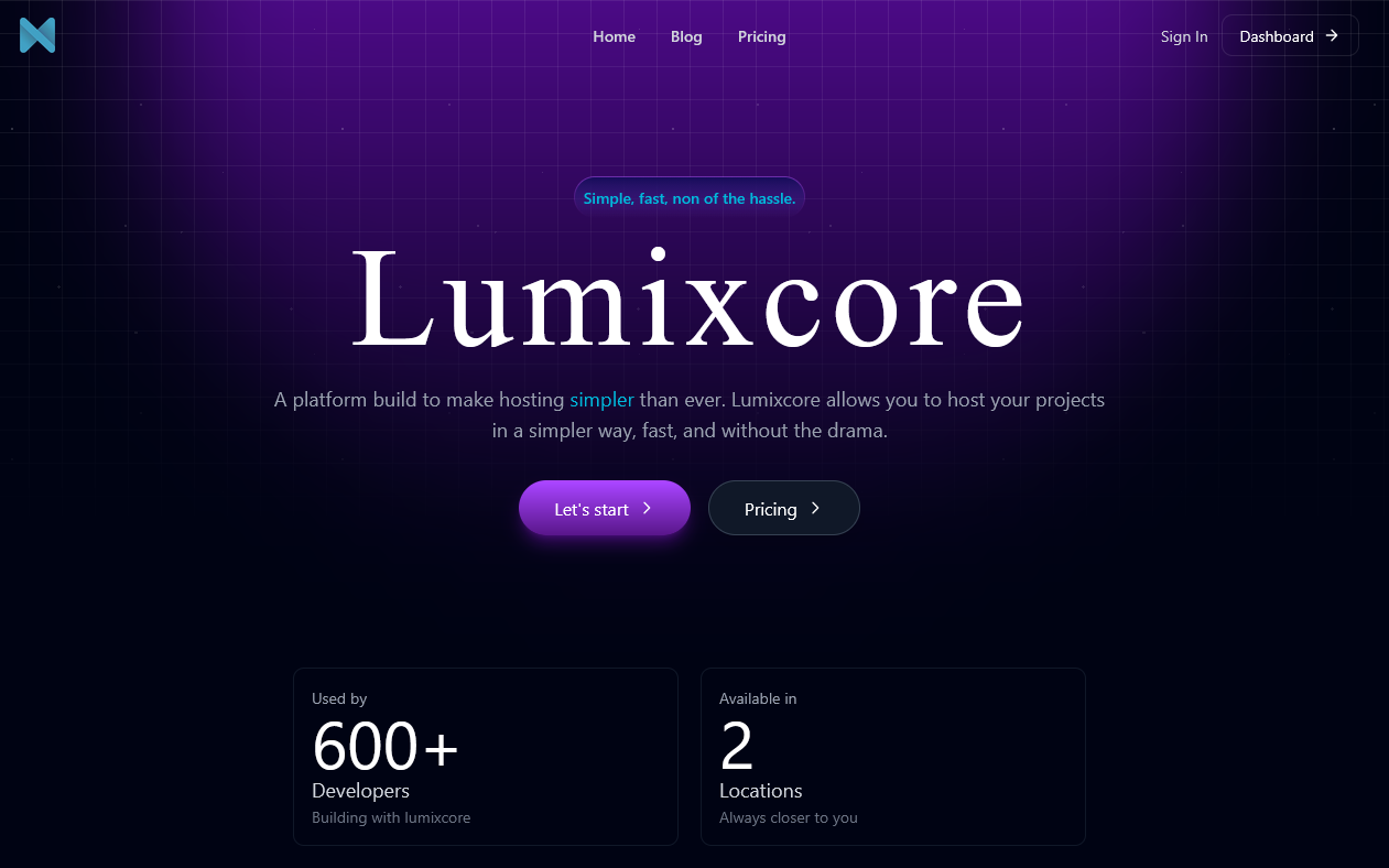 A platform build to make hosting simpler than ever. Lumixcore allows you to host your projects in a simpler way, fast, and without the drama.